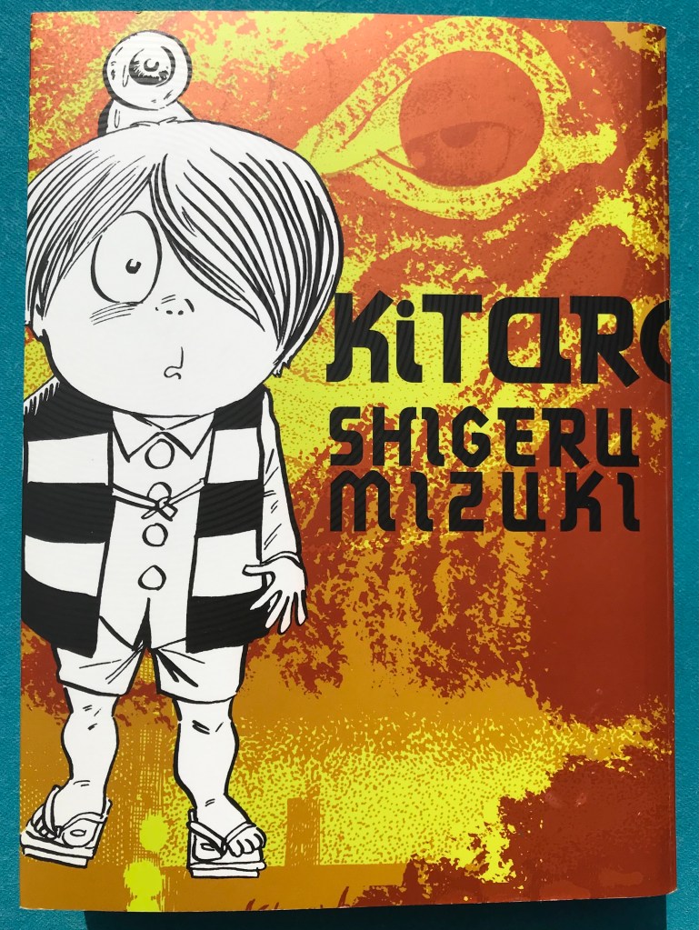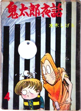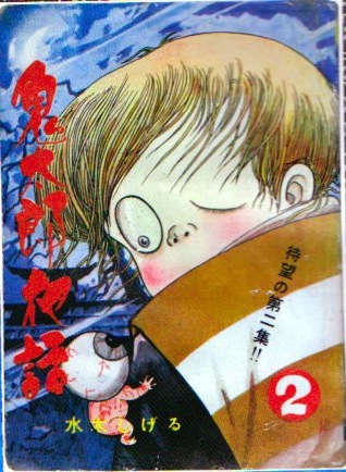 One of Shigeru Mizuki ‘s manga featuring his popular one-eyed character, Kitaro…with with his father Medama Oyaji, the small figure with eyeball head, on his head.