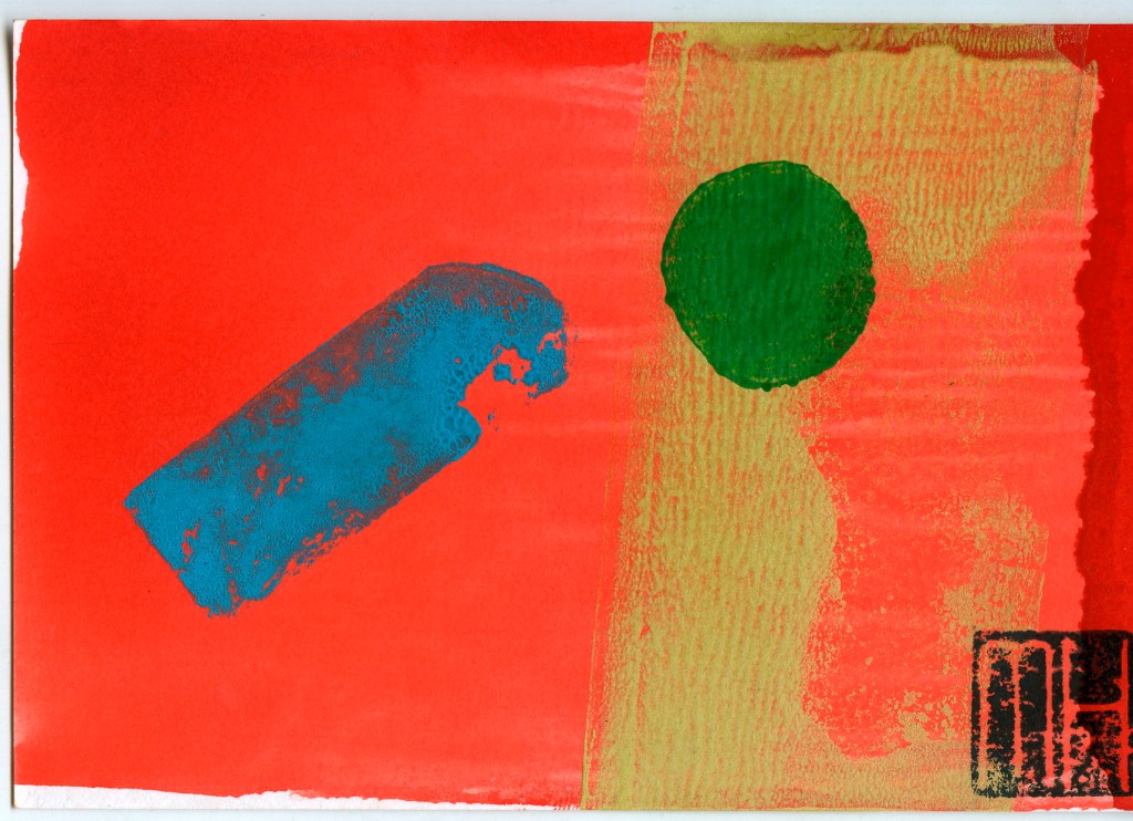 Continuing my POSTCARD ART blogs with another post profiling the design and production of my art postcards. I have been creating and printing these for more than a decade. This post looks back to cards I back when I started in 2006 and 2007. There are also cards from subsequent years. My art postcard project was inspired by a study trip to Japan. I looked at Modernist printmaking approaches that had taken place there. My cards were produced by hand in limited edition batches. Each card produced was unique…similar but not identical, part of a batch with an approximate match.