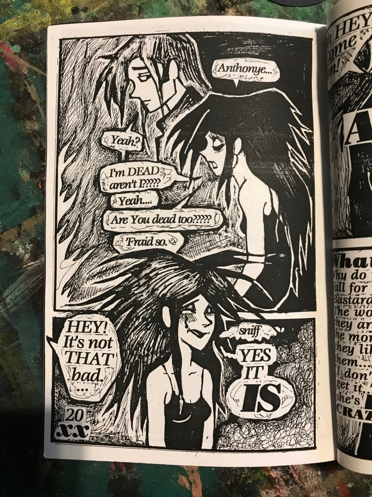 Next morning Neil Gaiman entered the elevator, and commenced chatting to a contact in his dulcet English tones! He was making a presentation at the conference…which turned out to be most impressive. When the conference concluded we all went down to the ground floor to THE EXPO(Small Press Expo). It followed on from the conference and ran over the weekend. It was Small Press heaven!…stalls manned by comics creators selling their comics. This conference and expo set the bar high for me on my return to Sydney. It had given me more confidence about researching comics. To have participated in such events that brought me new academic and artistic colleagues with whom to communicate, was joyous! Now I was determined. I would do my PhD research in the field of comics! Five years later, in 2004, I completed my doctoral thesis and was awarded my PhD.