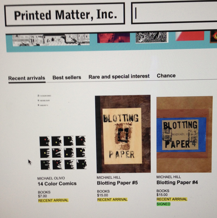 Issues of my comic BLOTTING PAPER on sale from the New York outlet PRINTED MATTER, Inc.(see street view below). This impressive store stocked issues of my comic BLOTTING PAPER: The Recollected Graphical Impressions of Doctor Comics for sale.