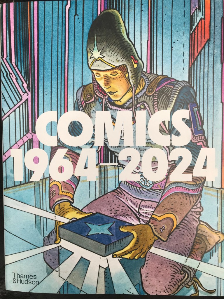 Above: cover shot of an impressive new volume COMICS 1964-2024…on comics art and comics history…cover illustration Starwatcher, 1986, by Moebius(1938-2012)…book published by Centre Pompidou and Thames & Hudson…Edited by Thierry Groensteen, Lucas Hureau, Anne Lemonnier and Emmanuele Payen…the volume is based on the exhibition held in Paris: Bande designee, 1964-2024 at the Centre Pompidou in 2024.