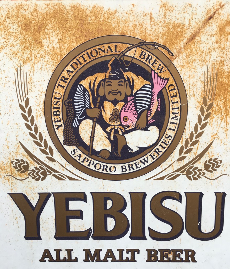 A beer ad with cartoon figures (Doctor Comics often enjoys a beer whilst reading manga).