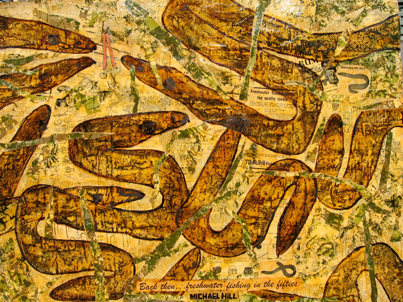 Back then…freshwater fishing in the fifties -painting, printmaking and collage, Works on Paper category