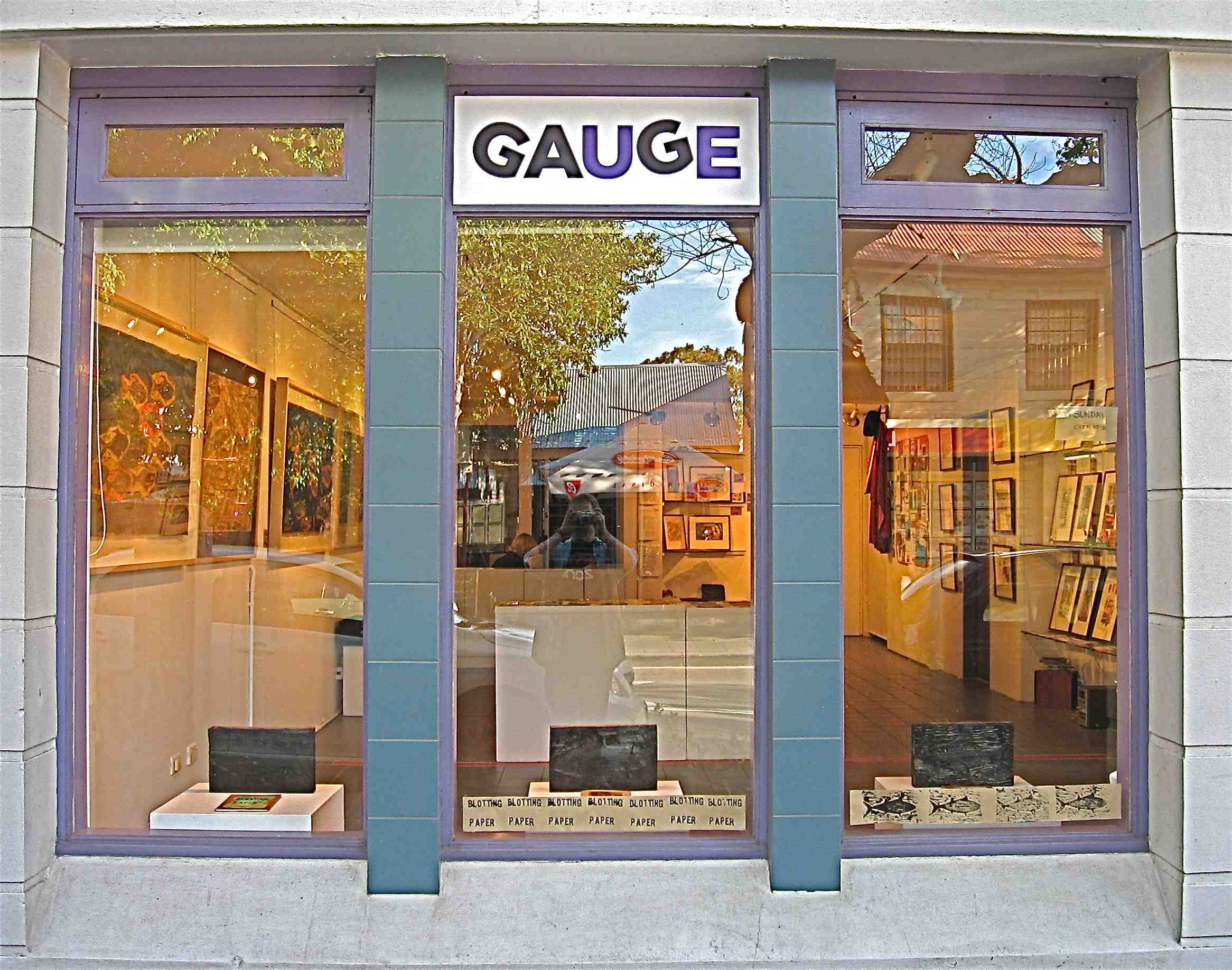 Looking through the GAUGE Gallery window at the Blotting Paper exhibition. (Photo-© 2013 Michael Hill)