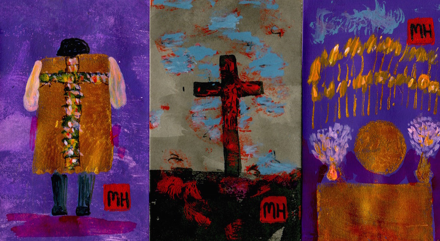 Accompanying his keynote address at the Melancholy, Nostalgia and the Religious Imagination, Society for the Study of Religion, Literature and the Arts Conference at the University of Sydney was the installation of a reliquary of cards and objects as accoutrements to his talk about childhood Catholic education.