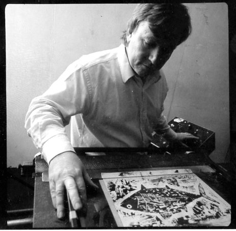 Animating my woodblock prints on the Oxberry animation stand at Sydney College of the Arts.