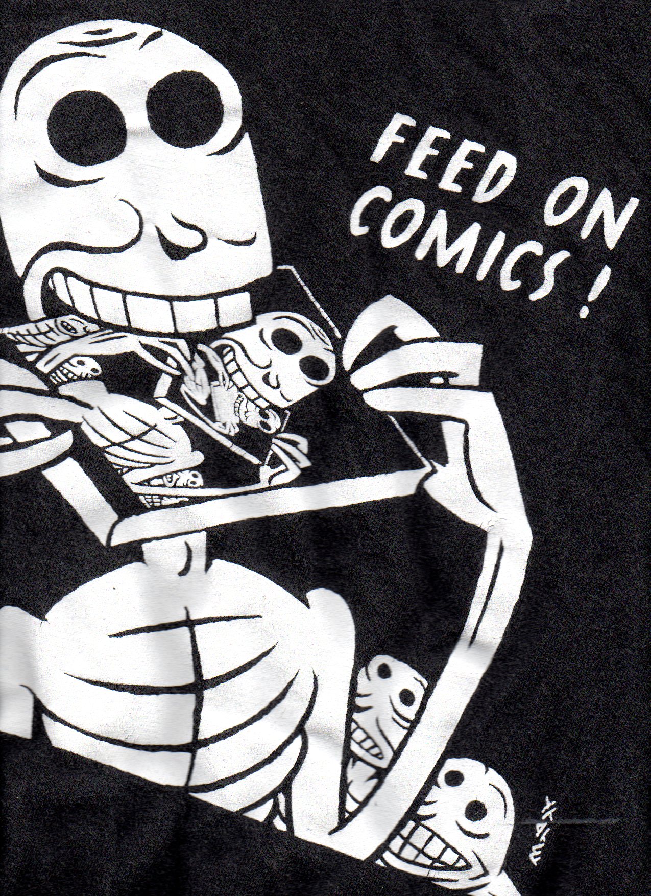 The FEED ON COMICS! T-shirt design by Max.Doctor Comics intends to follow this call on his Blog.