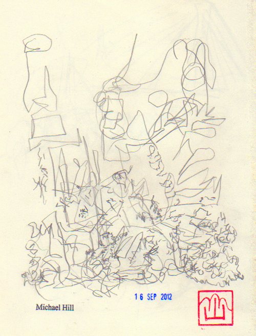 Drawing anything whilst listening to music invariably produces a pattern of abstract lines on paper that is most expressive. I follow the lines whilst I am making them and try to keep up with the tempo of the music. No erasers! A quicker tempo produces less inhibited lines and surprising shapes.