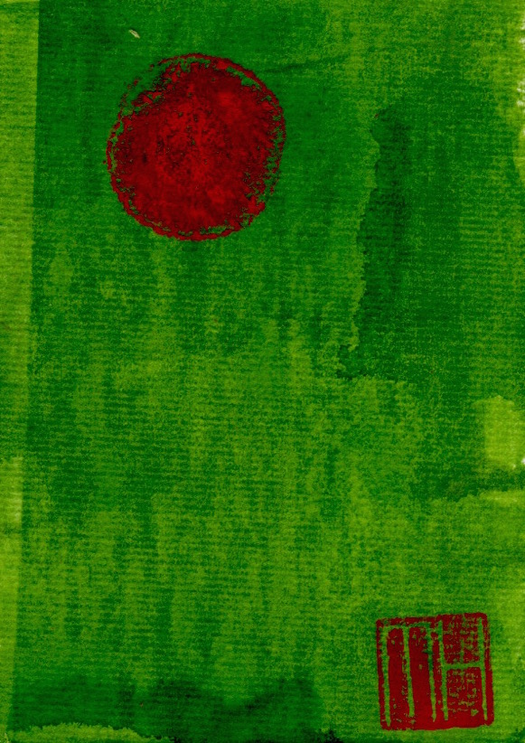 Perhaps the most interesting aspect at this stage of the printmaking to discern…is the noting of differences in the design of the cards of the same edition. Although the completed print run of cards will carry the same title…no two cards will be exactly alike due to variations in the printed layers. This makes me a renegade printmaker. In my work there are no exact duplicates…and in that sense, all of the cards may technically referred to as monoprints i.e. not identical despite the whole batch carrying the same title. At the end of the print run following the addition of more layers…this difference will remain discernible, possibly even more so. All of the finished cards despite minor differences from each other, will share the same nomenclature and date of production.