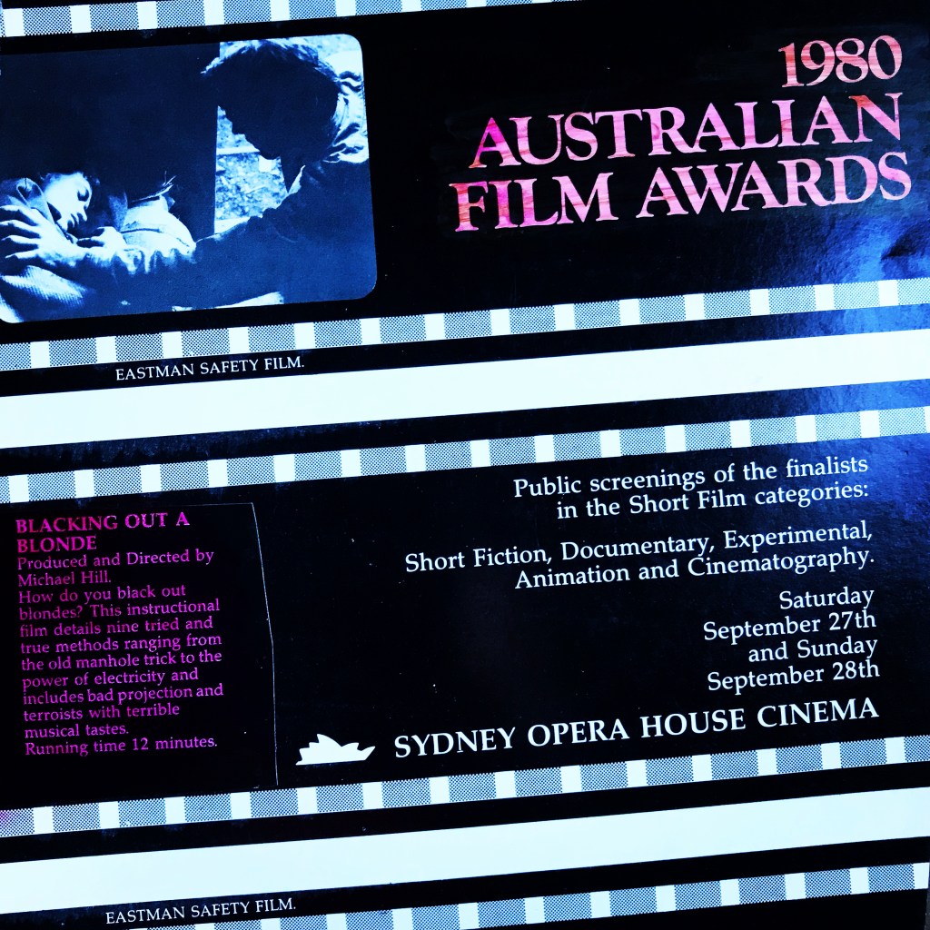 I have made a few independent art films…this is one of them, BLACKING OUT A BLONDE…screened at the Sydney Film Festival and the 1980 Australian Film Awards…that’s Jane Campion playing one of the many blondes in my film. She’s not too happy about the guy trying to kiss her on the knee…so she is going to whack him on the head with her bag!My film BLACKING OUT A BLONDE was screened at the Sydney Opera House..in competition for the 1980 Australian Film Awards!