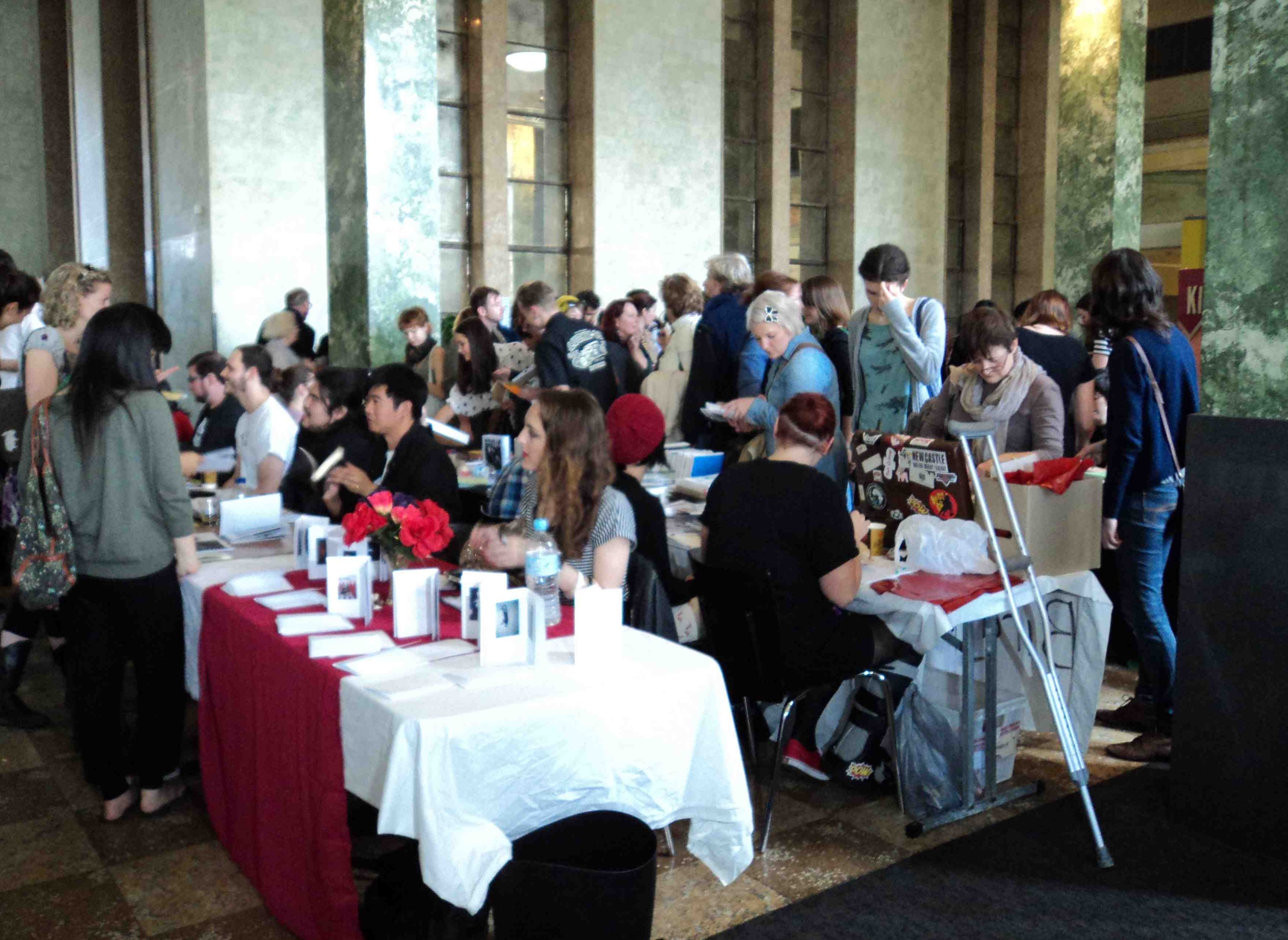 Some very busy zines and comics trading took place in the Foundation Hall…along with the meeting and mingling and jewellery jingling. (Photo by Louise Graber)